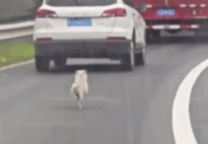 The dog tried in vain to catch up with his former owners' car. Eventually, caring people decided to take him in.
