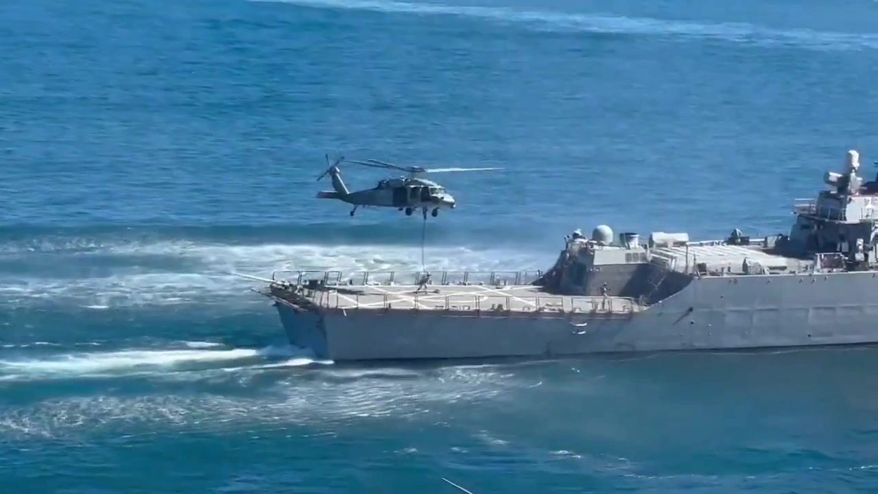 Navy SEAL fast rope demo aboard USS Ross.