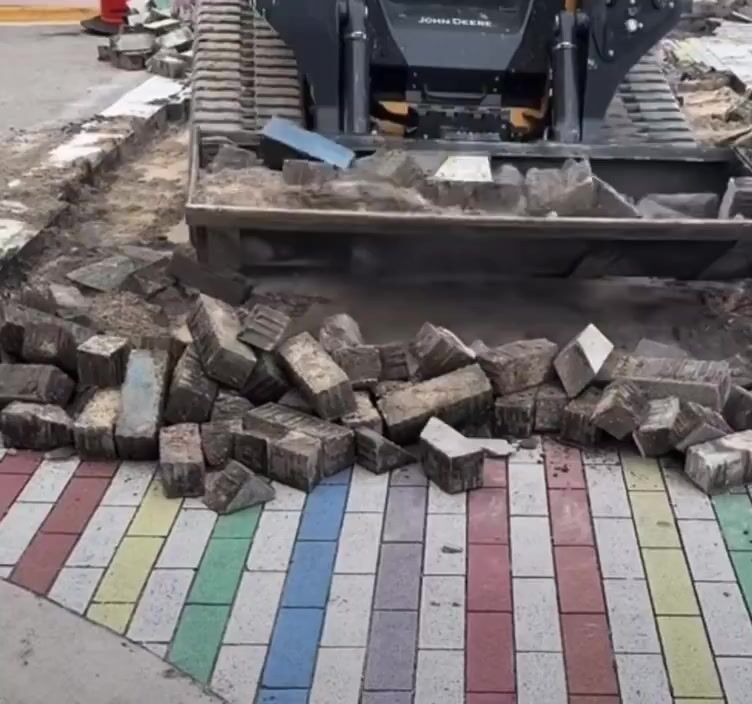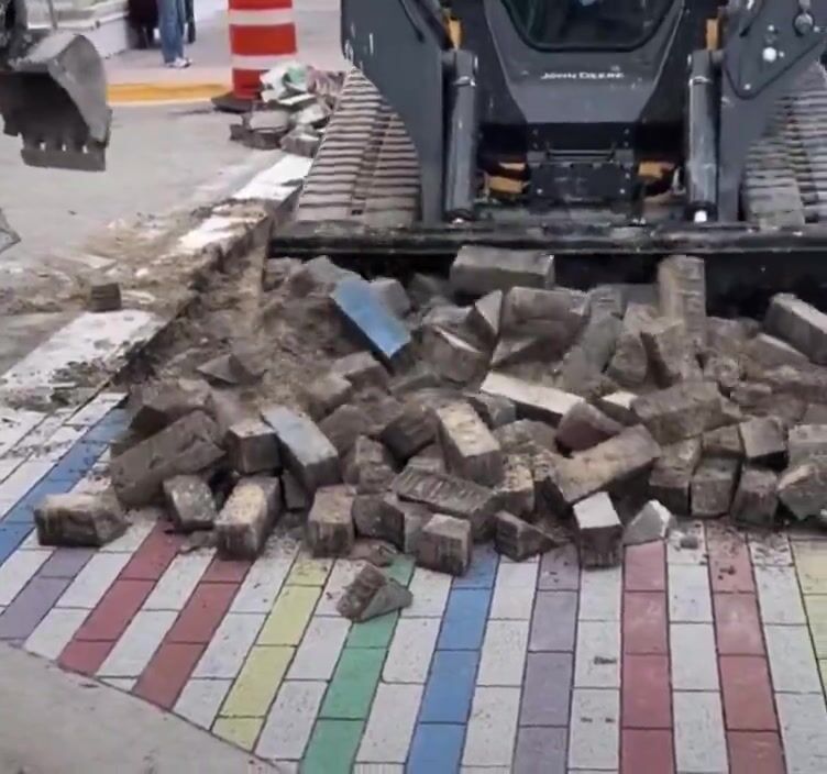 «Sad, tearing up a street because it has “pride colors”, all the money spent on that could have gone to buy bullets.»