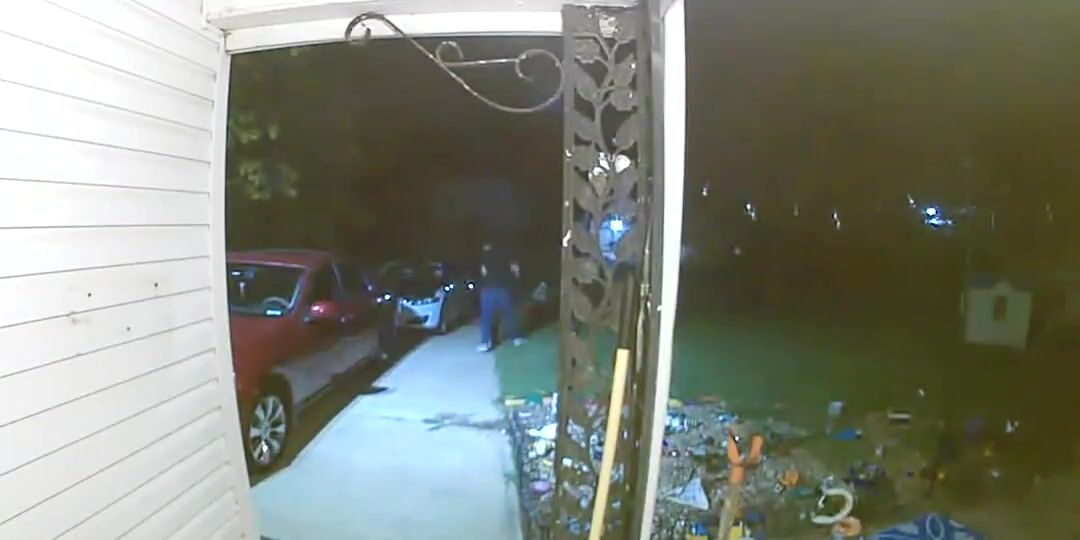 In the video, the woman appears to be approaching the porch when she yells, “Kevin,” and a man comes from behind her, turns her around and forcibly walks her back to the street, where they both disappear.