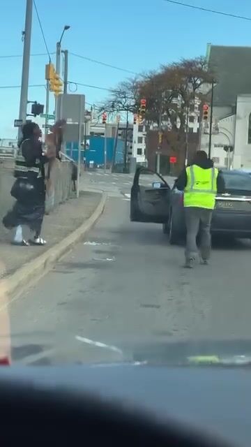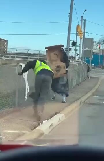 «thumbs up camera man. that homeless had a rabid animal lightening punch»