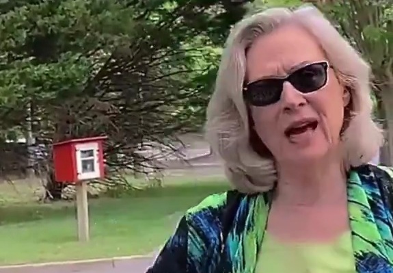 Democrat karen gets caught REMOVING Trump sign from private property.