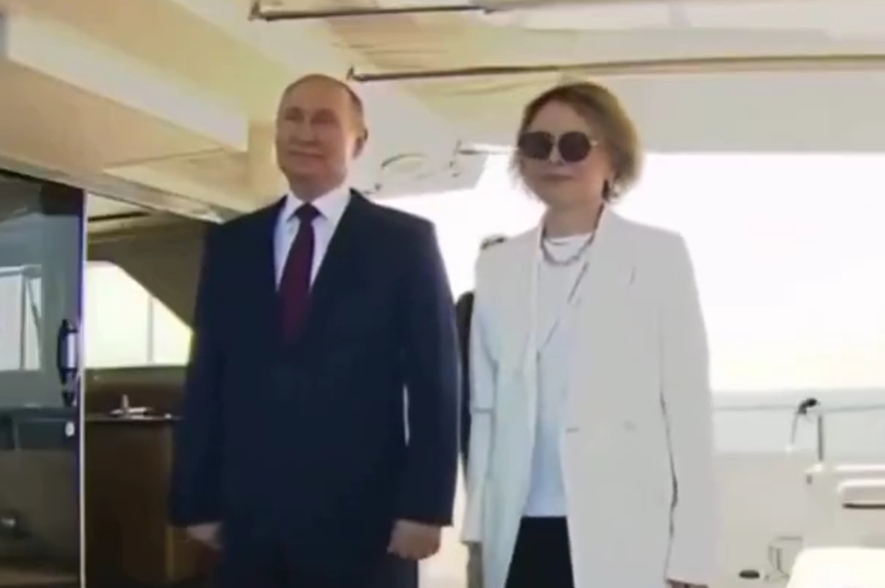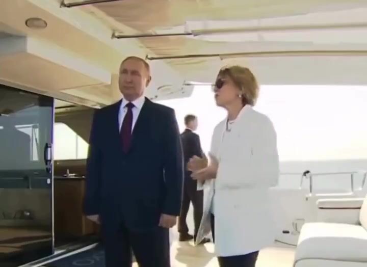 Classic: Putin gesturing a female host not to speak while the national anthem is being played. Meanwhile the USA is collapsing