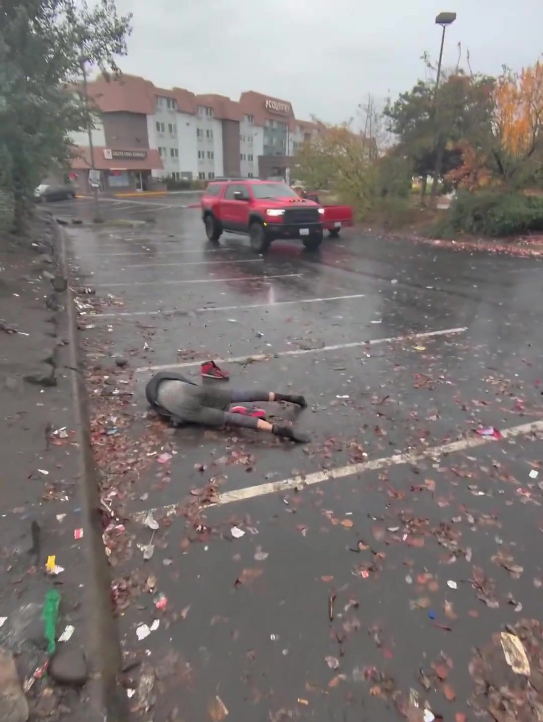«It's the parking lot morning Yoga group - she's doing the Flakka position»