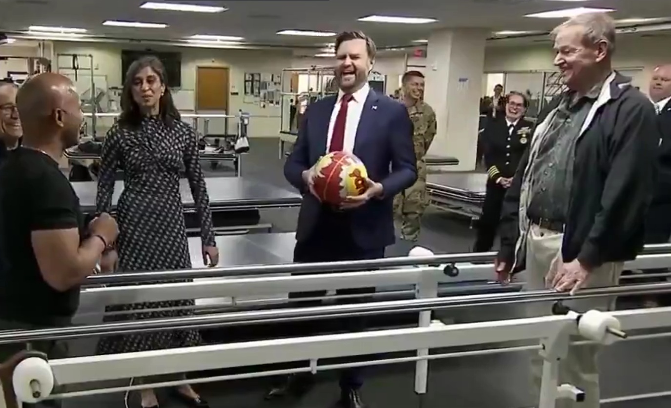 Funny Guy: A service member at Walter Reed tosses a medicine ball to Vice President JD Vance. His response was hilarious