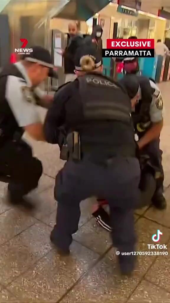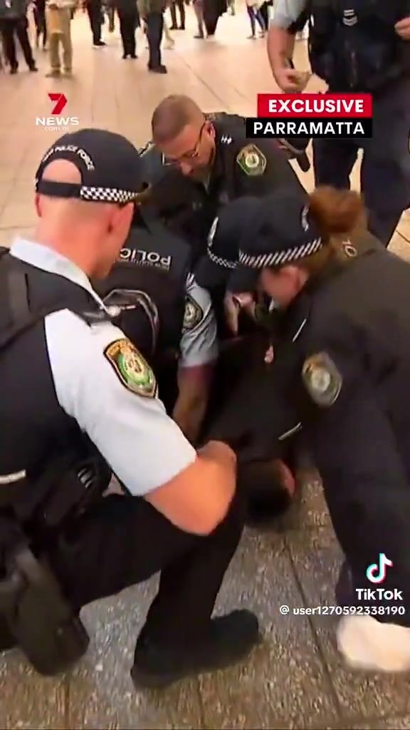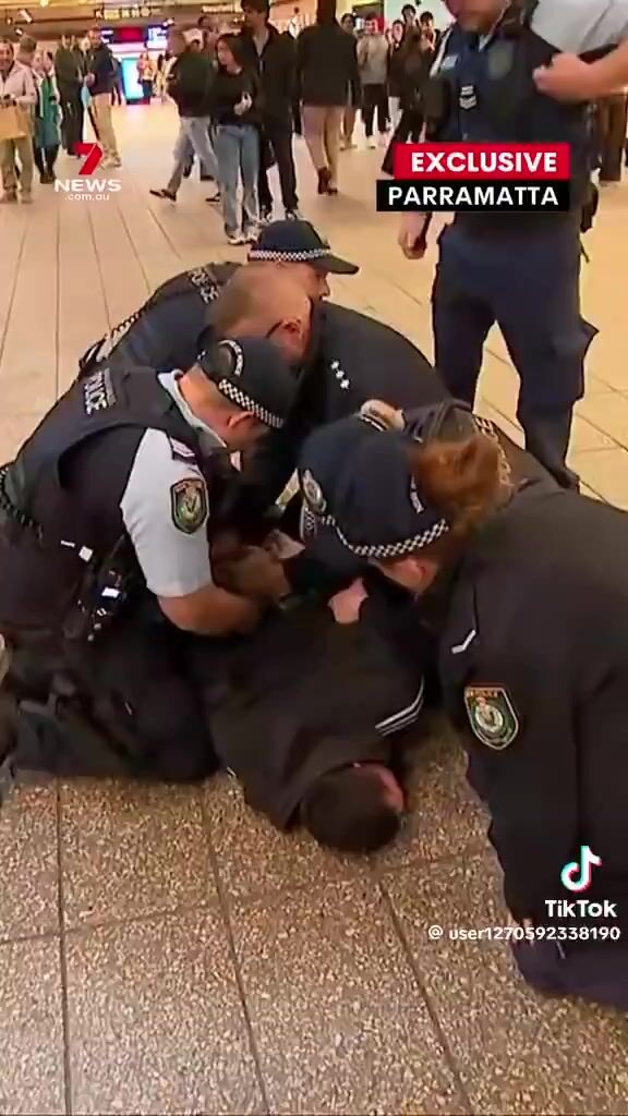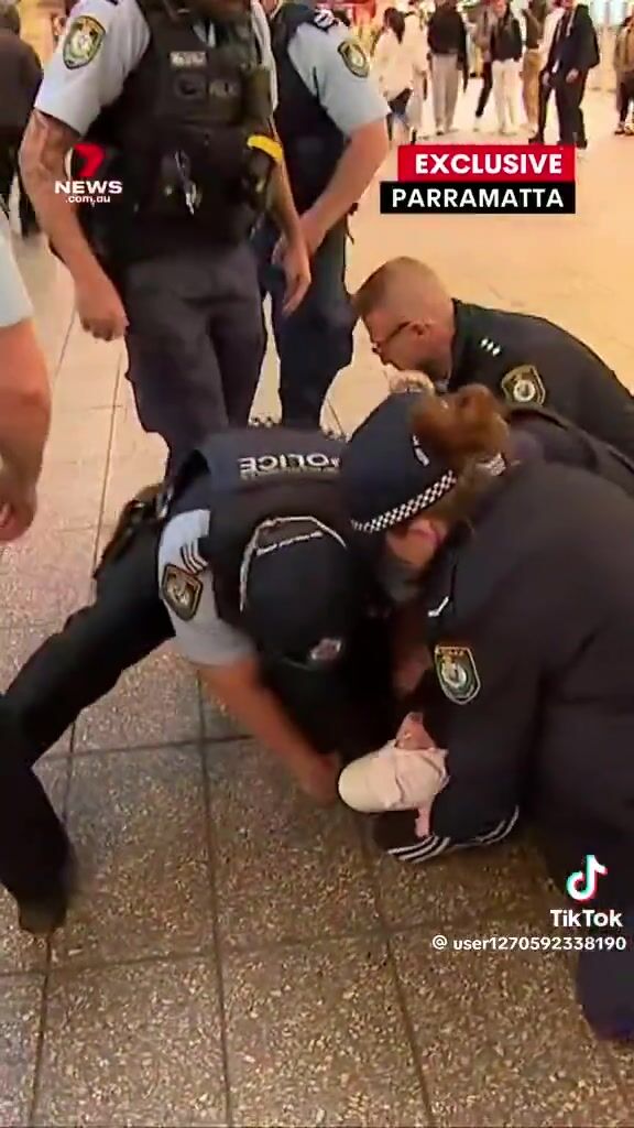 The guy has a knife, and the female police officer doesn't pull out her weapon.