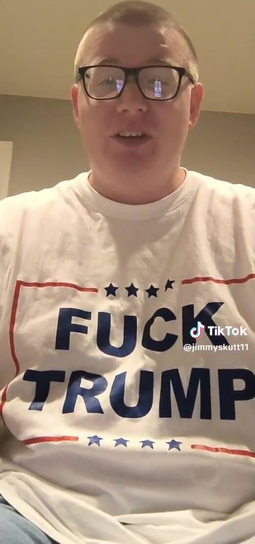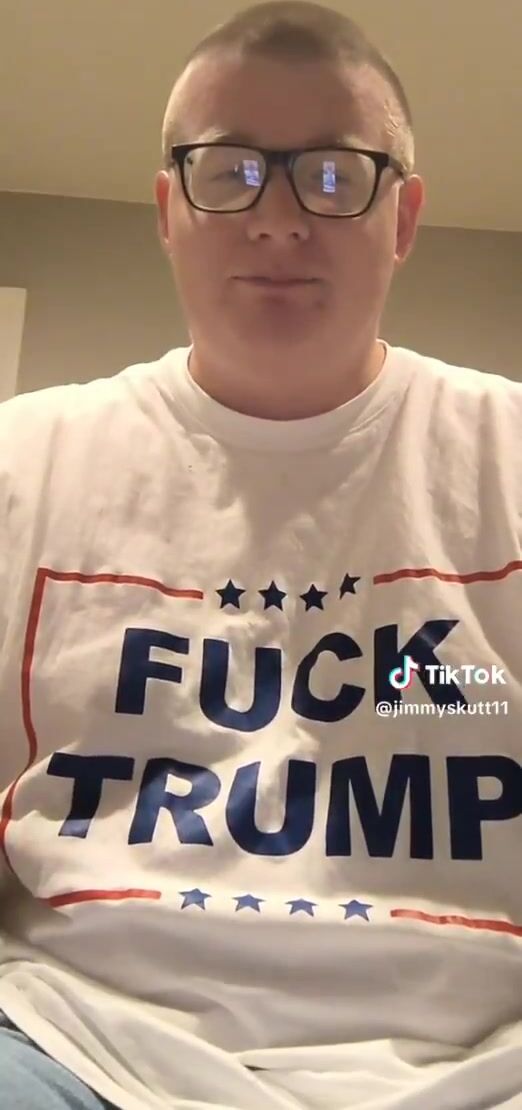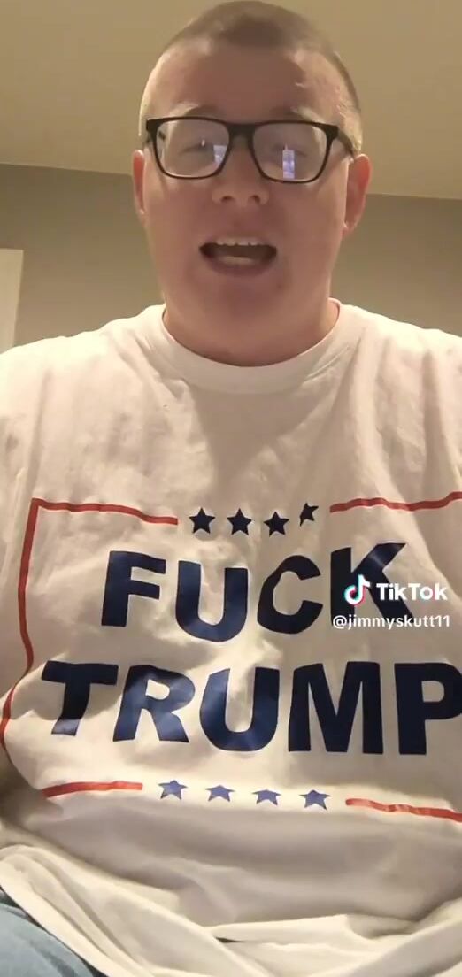 He really thinks this makes him look good, with his "FUCK TRUMP" shirt, covering his pendulous, flabby man tits.